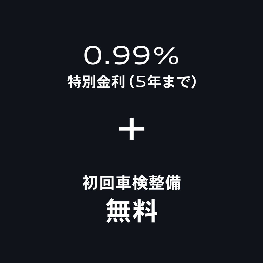 0.99%特別金利 (5年まで) + 初回車検整備無料